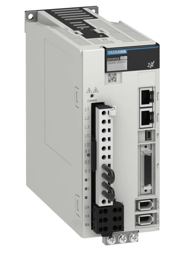 SGDXW dual-axis servopack supports Yaskawa’s full line of rotary, linear, and direct drive servo motors. The SIGMA X technology adds 3.5 kHz bandwidth to improve speed and precision. While Yaskawa’s advanced servo tuning algorithms include world-class vibration suppression, ripple and friction compensation, advanced autotuning, and tuning-less commissioning right out of the box